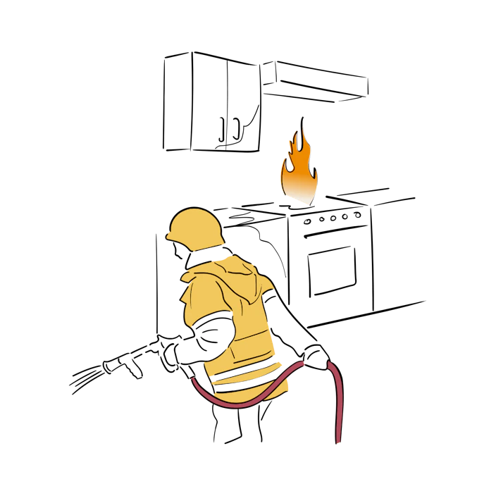 Hér finnur þú leiðbeiningar og mikilvægar upplýsingar varðandi viðbrögð við brunatjóni.
