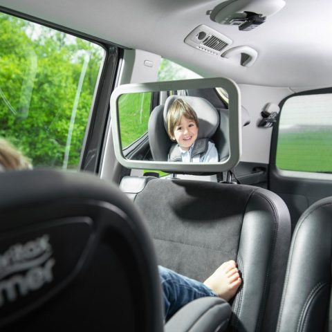 Spegill sem auðveldar foreldrum að eiga samskiptum og fylgjast með barni sínu sem er í bakvísandi barnabílstól.